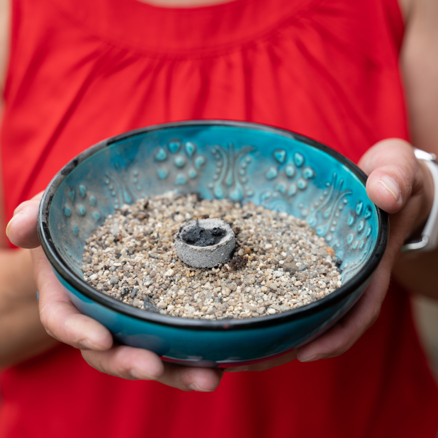 Selbst zu räuchern ist sehr einfach. Es bedarf einer feuerfesten Schale, etwas Sand oder Kies in der Schale als Pufferzone um die Hitze aufzunehmen, ein Stück Kohle, mittlerweile im Handel sehr einfach zu erwerben, als Räucherkohle gekennzeichnet und Harze, Rinden und Kräuter.